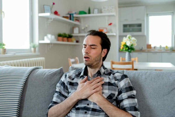 • قد يشعر المريض بضغط أو ثقل في الصدر وقد يشبه ألم الذبحة الصدرية ألم عسر الهضم.